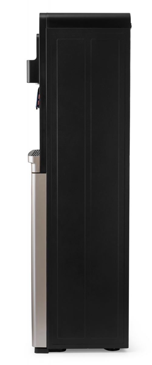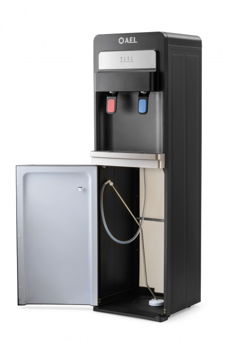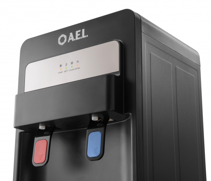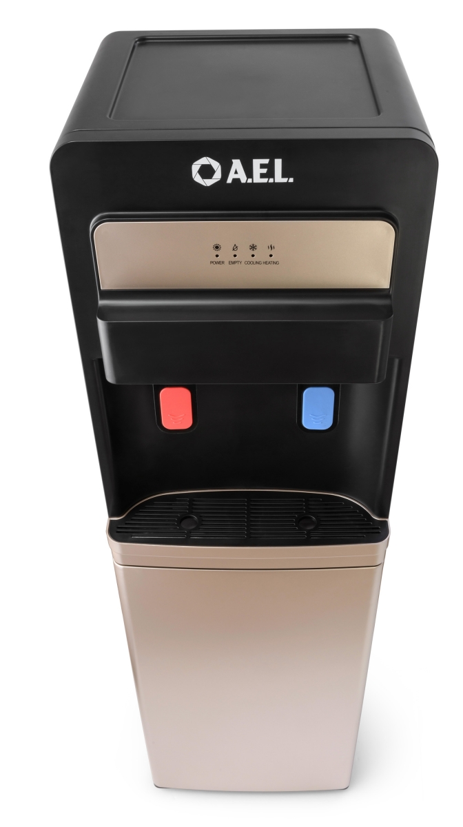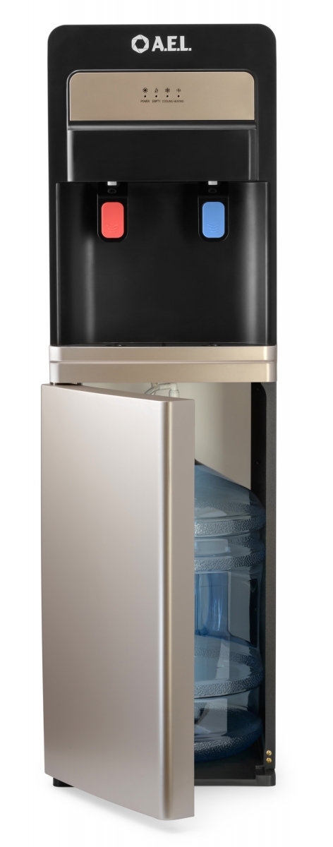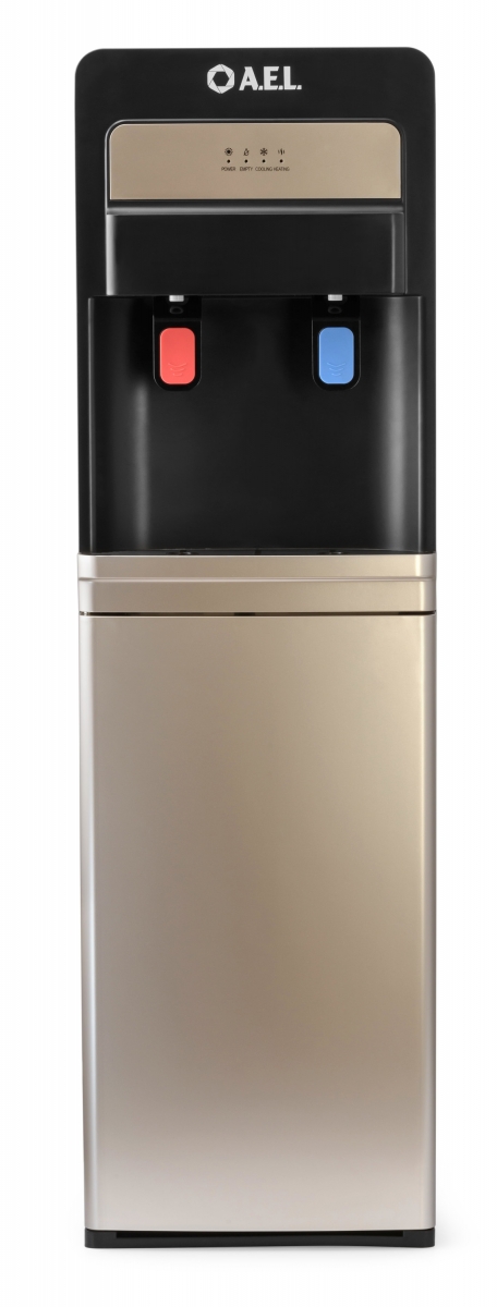 Новинка в ассортименте АЕЛ - кулер с нижней загрузкой бутыли с электронным охлаждением. Цвет: черный с золотой вставкой. Модель оснащена двумя краниками нажим кружкой (горячая/холодная). Стильный лаконичный дизайн отлично будет смотреться в офисе и дома.