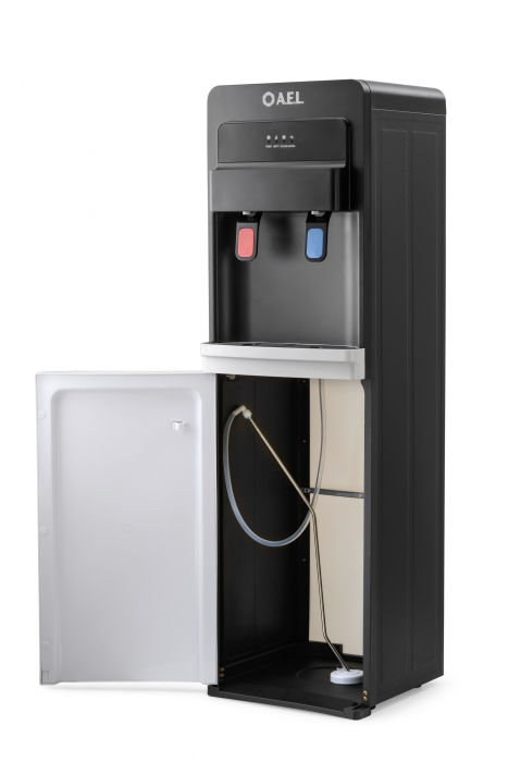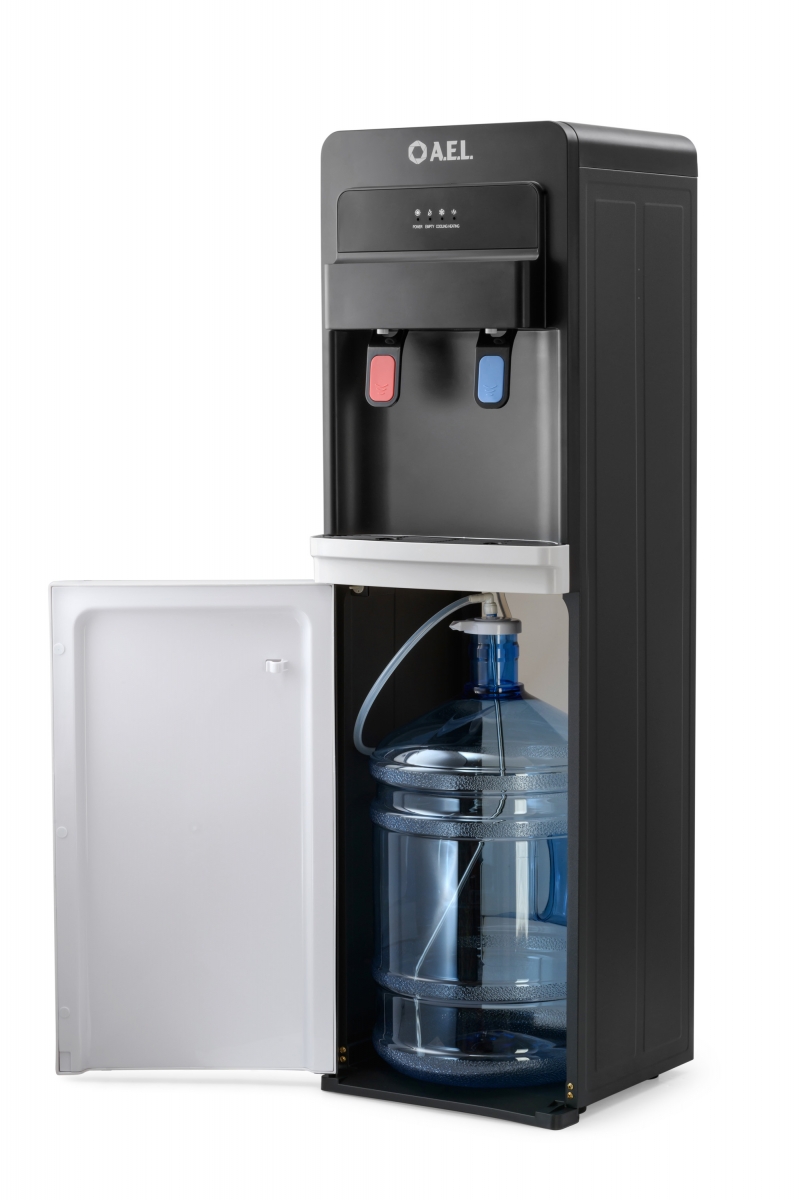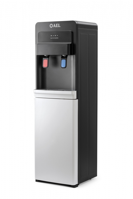 Новинка в ассортименте АЕЛ - кулер с нижней загрузкой бутыли с электронным охлаждением. Цвет: черный с белой вставкой. Модель оснащена двумя краниками нажим кружкой (горячая/холодная). Стильный лаконичный дизайн отлично будет смотреться в офисе и дома.