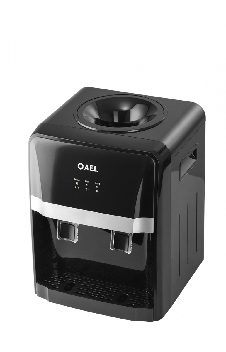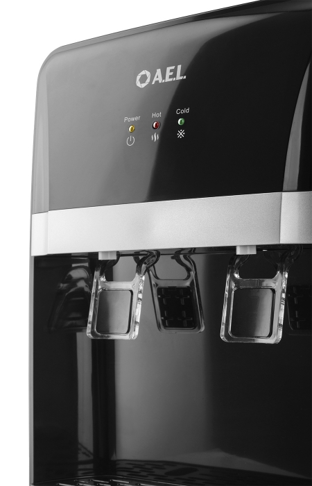 Настольный аппарат с электронным охлаждением. Цвет: черный с серебряной вставкой. Краники "нажим чашкой".