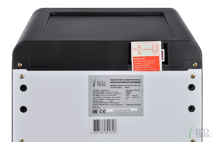 Кулер Ecotronic K42-LXE black — напольный кулер с нижней загрузкой бутыли и поворотными кранами подачи воды.