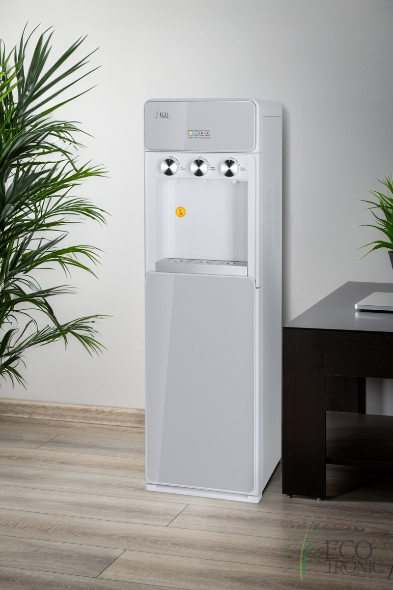 Кулер Ecotronic K42-LXE — напольный кулер с нижней загрузкой бутыли и поворотными кранами подачи воды.