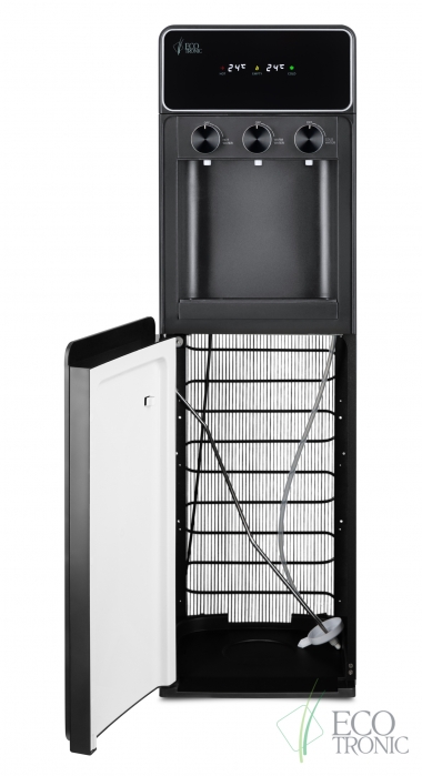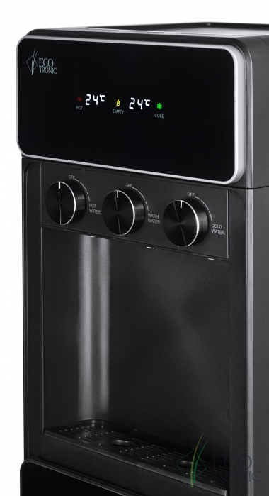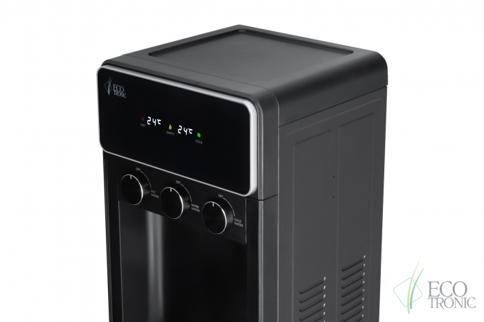 Модель с компрессорным охлаждением. Есть монитор с цифровой индикацией работы аппарата, нагрева, охлаждения и необходимости заменить бутыль (включается через 4 минуты при отсутствии воды в бутыли).