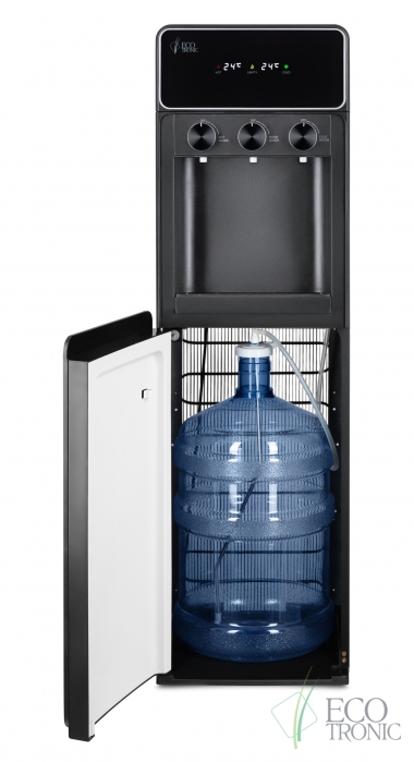 Необычный внешний вид кранов, стильный корпус и нижний отсек, в котором полностью скрывается бутыль, позволяют эффектно вписать этот кулер в современный интерьер с продуманным дизайном.