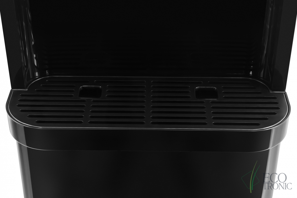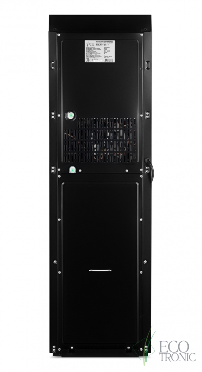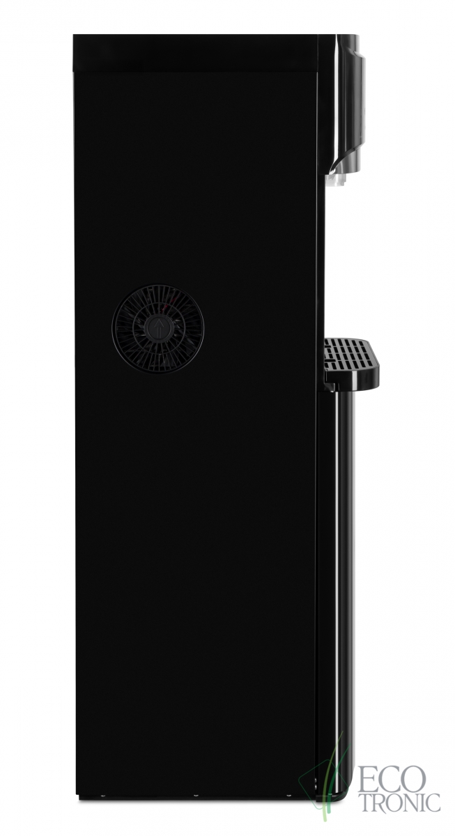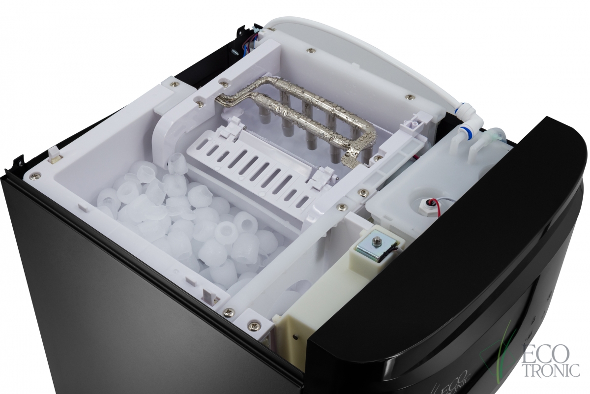 Напольный кулер с ледогенератором, с нижней загрузкой и компрессорным охлаждением, в черном глянцевом корпусе с вставкой из нержавеющей стали. Ледогенератор позволяет получить кубики льда, за час примерно 560 г. Для подачи льда используется нажим кружкой, для подачи воды - кнопки на сенсорной панели управления (подача воды, включение режима нагрева и охлаждения, запуск работы ледогенератора). Три режима охлаждения: супер-охлаждение воды без включения ледогенератора (3 л/ч), с ледогенератором 0,5 л/ч, с полным отсеком для льда 2 л/ч. Бак горячей воды из нержавеющей стали, с внутренним спиральным нагревателем. Автоматическое отключение воды при наборе 1,2 л горячей воды и 1,6 л холодной воды. Система энергосбережения отключает нагрев после отключения освещения, охлаждение воды и ледогенератор при этом не отключаются.