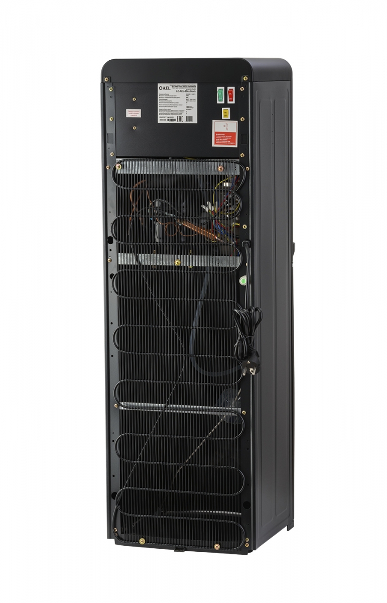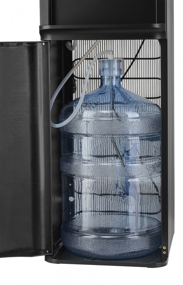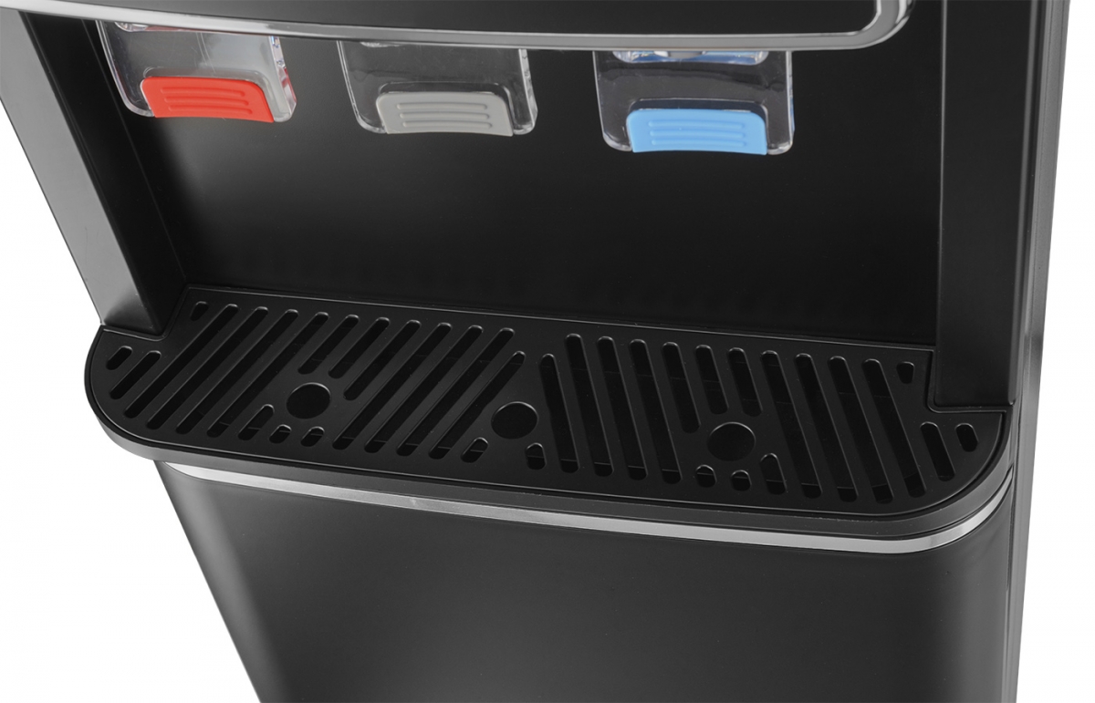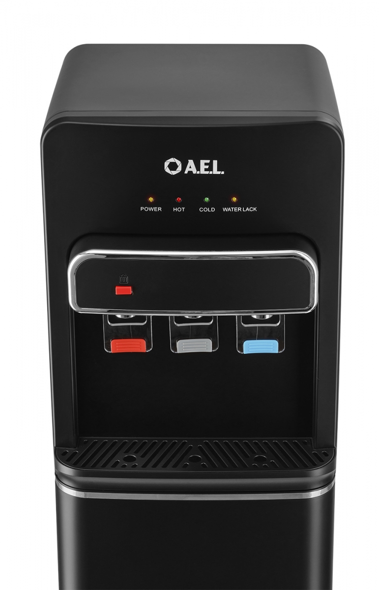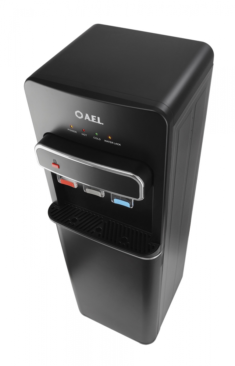Напольный кулер с нижней загрузкой бутыли. Компрессорное охлаждение. Снабжен 3-мя кнопками для воды холодной, горячей и комнатной температуры. Защита от случайного нажатия на кране горячей воды. Цвет черный.