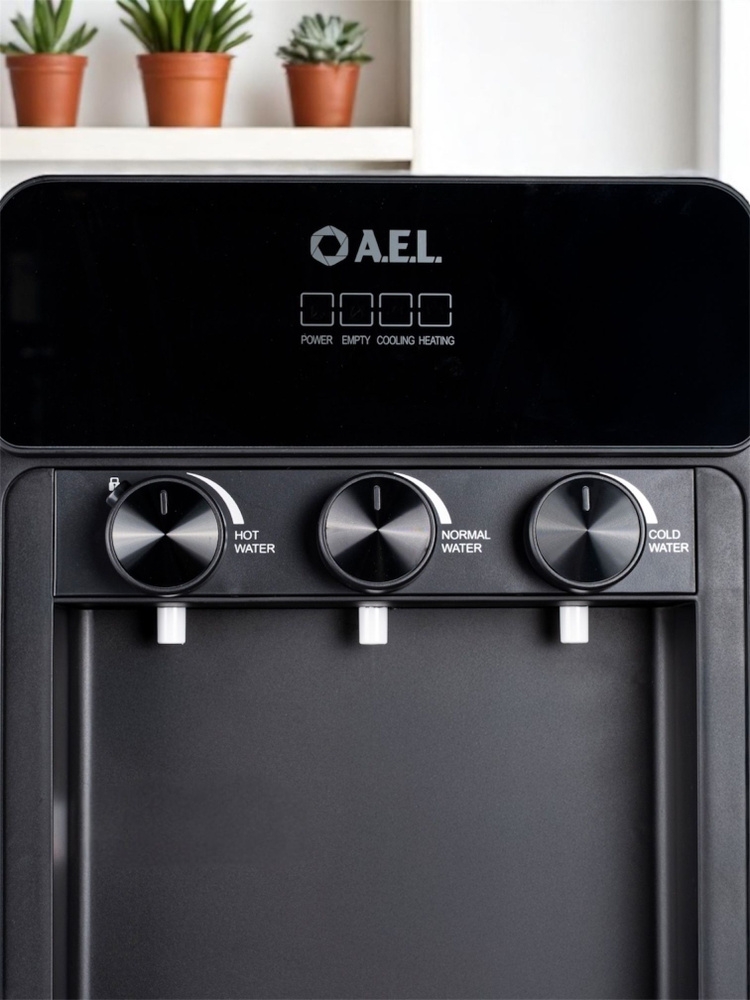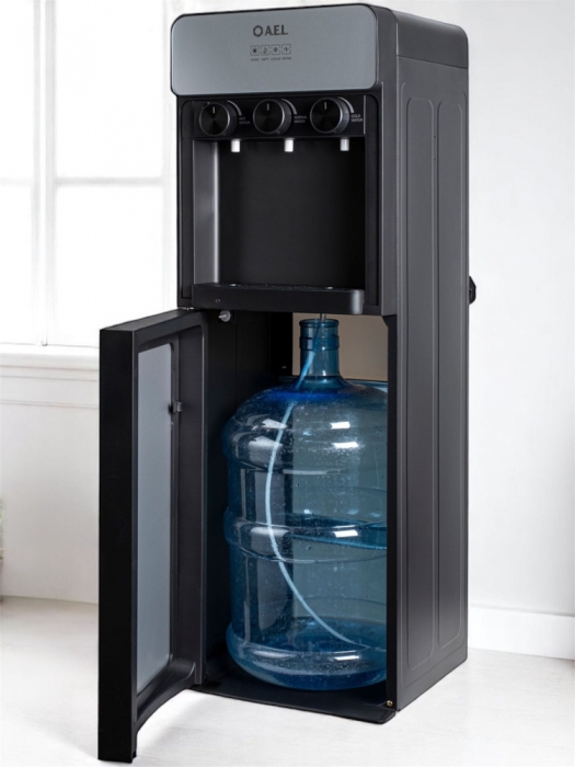Кулер для воды LC-AEL-825a black/silver - напольный кулер с нижней загрузкой бутыли, с компрессорным охлаждением и поворотными кранами подачи воды. Корпус черного цвета с серебристыми вставками. Три крана подачи воды: горячей, холодной и комнатной температуры. На кране горячей воды располагается кнопка от случайного нажатия. В процессе эксплуатации аппарата в тот момент, когда вода в бутыли закончилась, на панели индикации загорится индикатор наличия воды в бутыли. Это символизирует о том, что необходимо заменить пустую бутыль.
