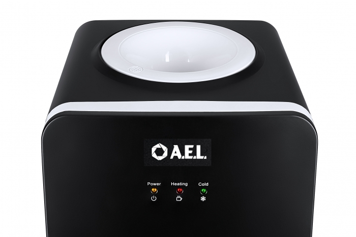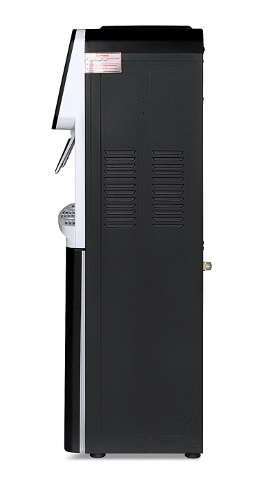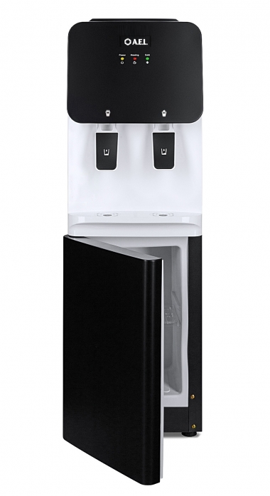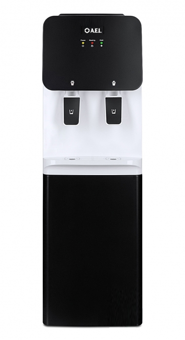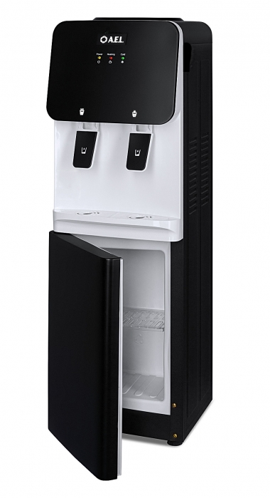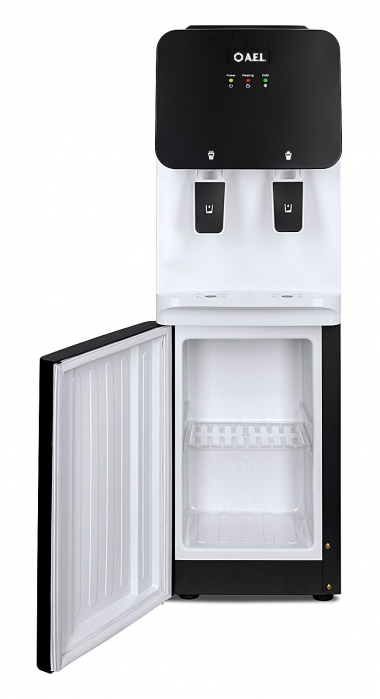 Напольный кулер без охлаждения, с нагревом и шкафчиком для продуктов. Гладкая лицевая панель, удобные краны "нажим чашкой" и малые габариты этого аппарата эргономично впишутся в Ваш офис.