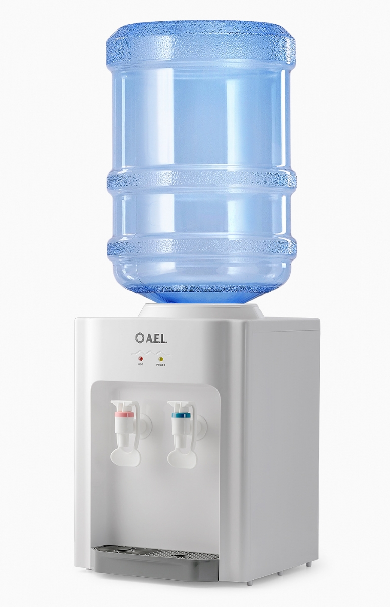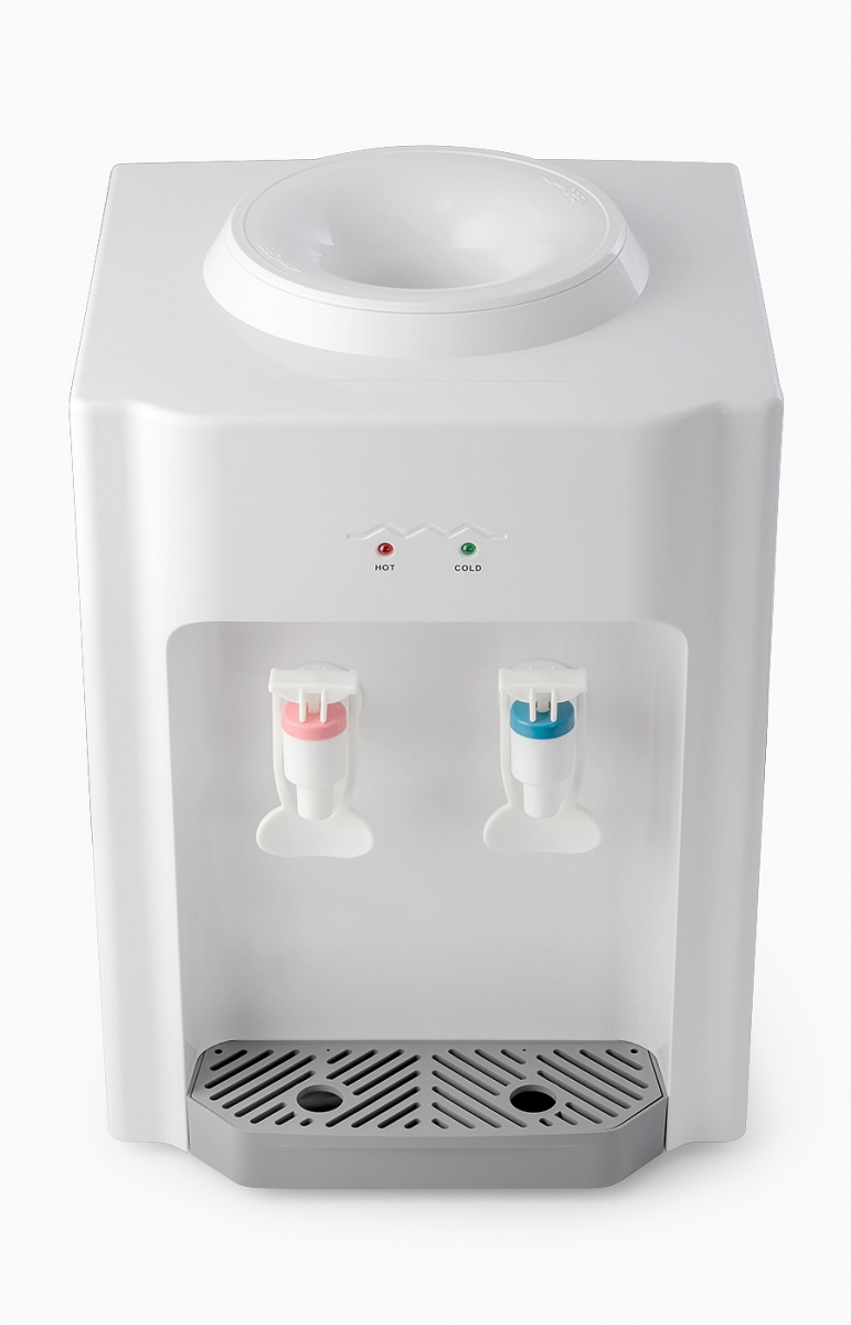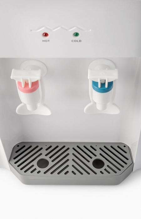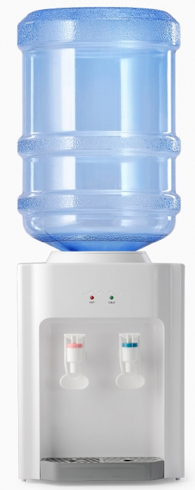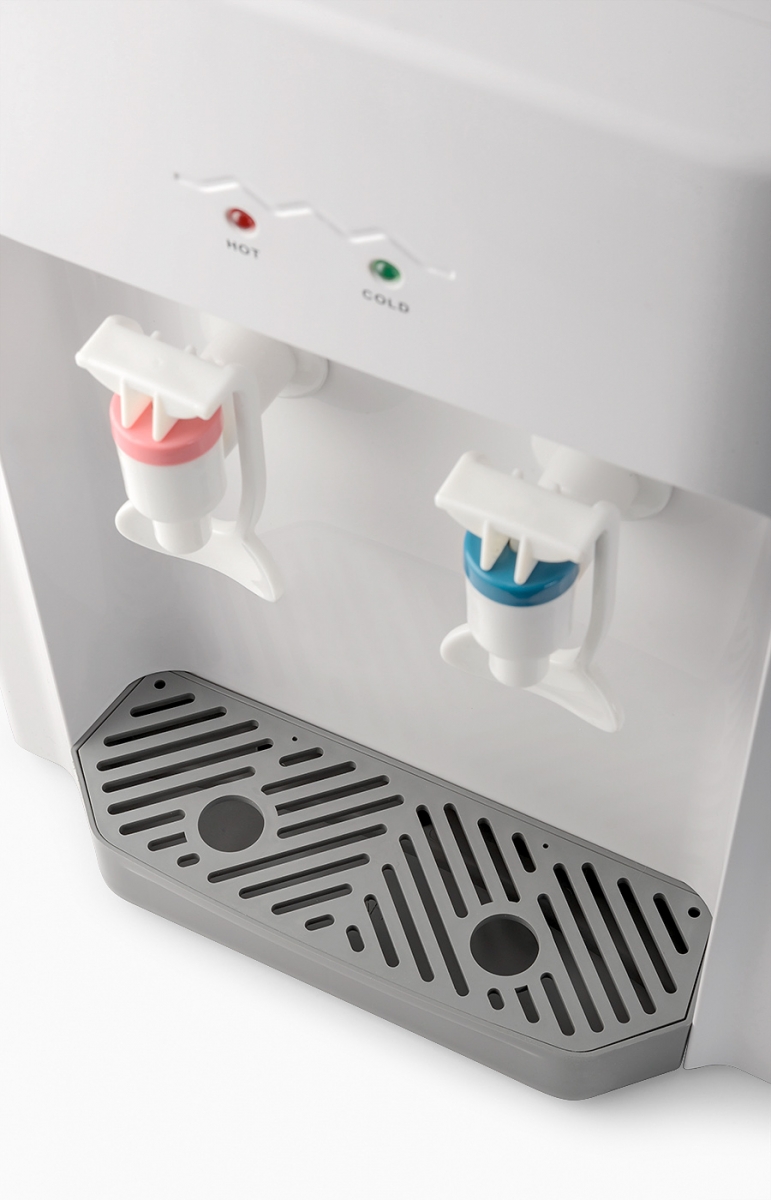 Настольный кулер для воды с электронным охлаждением и верхней загрузкой бутыли. Имеет компактные размеры, благодаря чему легко устанавливается на стол или тумбочку не загромождая пространство. Оснащен двумя механическими кранами типа "нажим чашкой" для подачи горячей и охлажденной воды. Для включения/отключения нагрева или охлаждения на задней стенке корпуса расположены специальные тумблеры. Корпус изготовлен из высококачественного пищевого пластика. Кулер подходит как для домашнего, так и для офисного использования, на предприятиях и учреждениях.