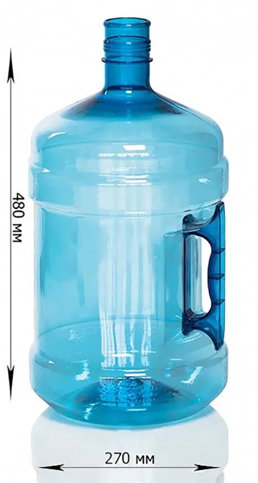 Многоразовая ПЭТ бутыль 18,9 литров используется для хранения воды или для кулера. У бутыли есть надежная ручка, что очень удобно при переноске или походе на родник. Подходит под любой тип помп. Срок службы не ограничен, все зависит от интенсивности использования и условий хранения, а хорошая жесткость бутыли для кулера продлит срок службы многократно.