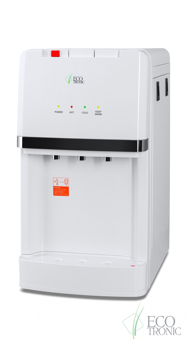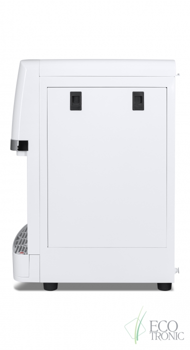 Пурифайер настольного типа с ультрафильтрационной системой очистки воды. Электронное охлаждение. Стильный дизайн. Три крана типа "клавиши": подачи горячей воды с защитой от детей, холодной воды и подачи воды комнатной температуры из бутыли. Индикация работы пурифайера, нагрева и охлаждения воды.