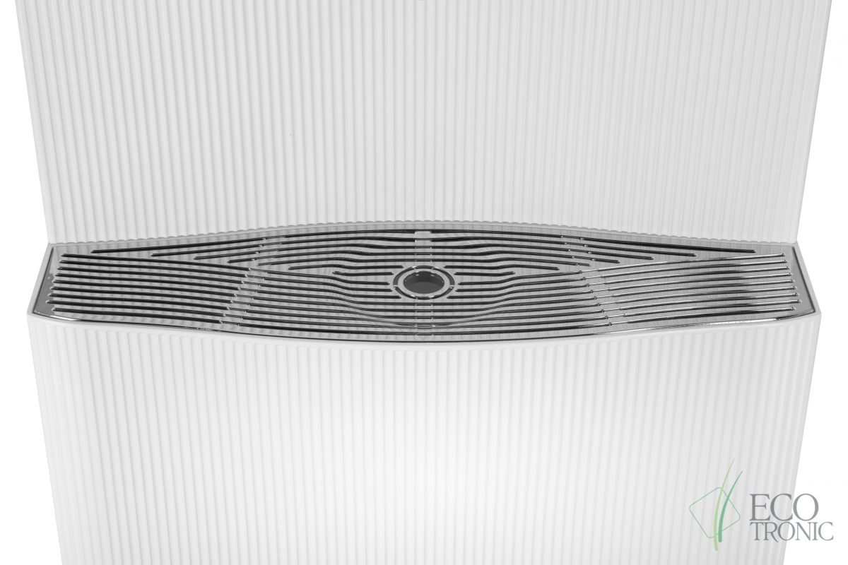 Стильный дизайн с рельефной поверхностью лицевых панелей и хромированными элементами: решетка лотка каплесборника, краник и окантовка дисплея.