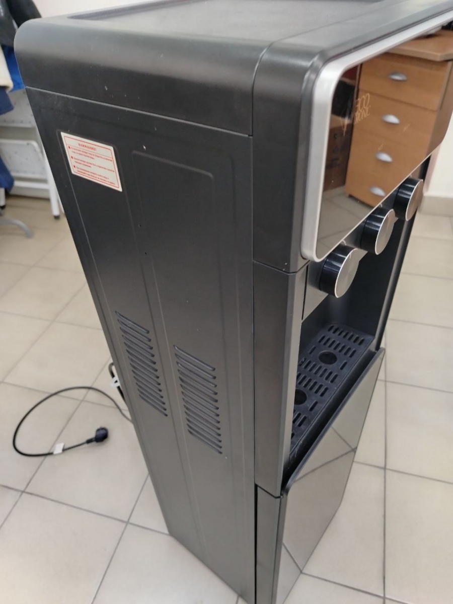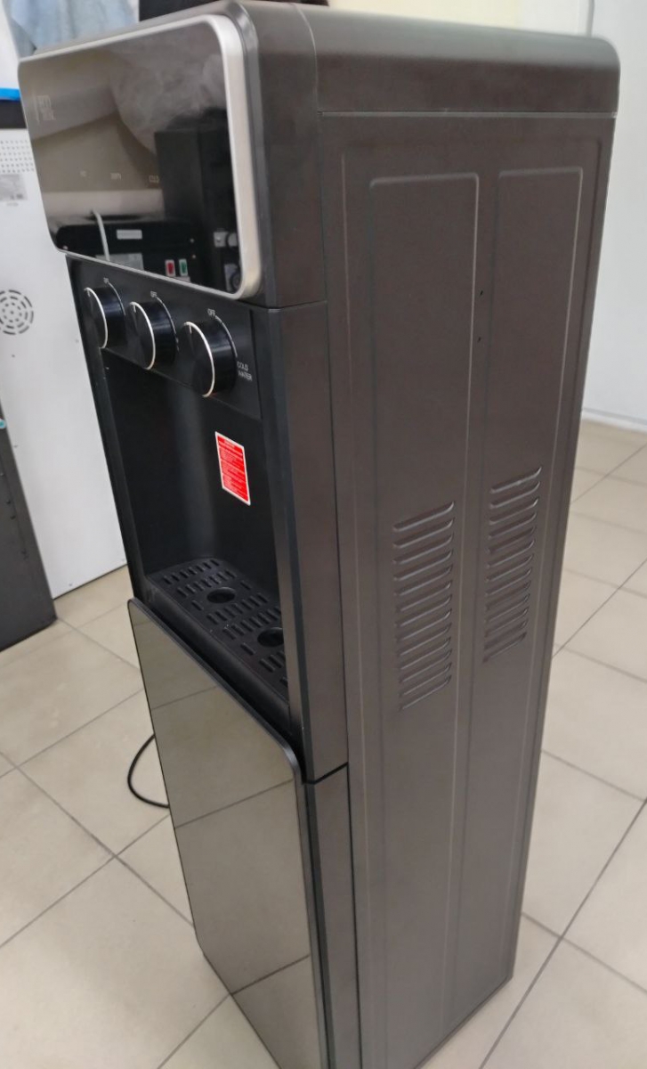 Модель с компрессорным охлаждением. Есть монитор с цифровой индикацией работы аппарата, нагрева, охлаждения и необходимости заменить бутыль (включается через 4 минуты при отсутствии воды в бутыли).