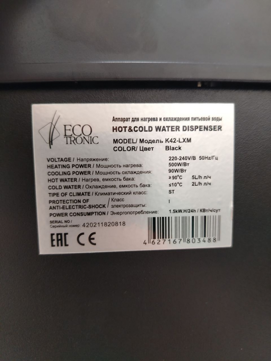 Уцененный кулер Ecotronic K42-COMPRESSOR MONITOR black (с/н 4627167803488 031225Б)